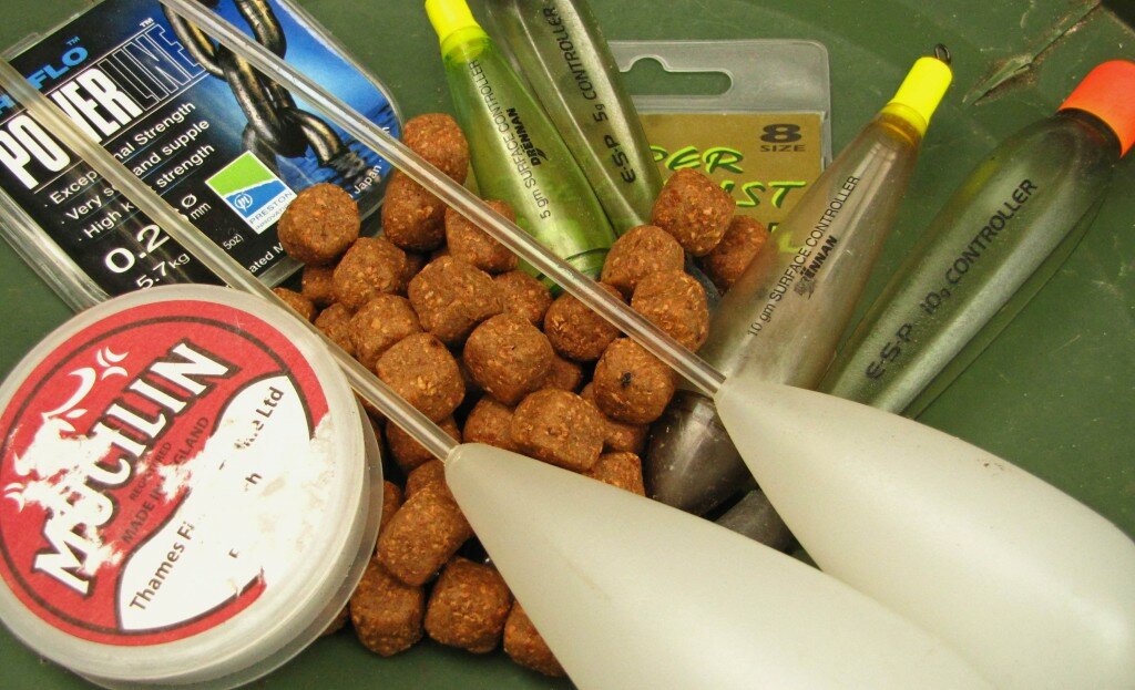 Для ужения с поплавком я предпочитаю поплавочное удилище ESP, катушку Daiwa SS2600 и основную леску 12lb Shimano Catana. Этот набор подходит почти для всех ситуаций. Что касается оснастки, то я использую поплавок-контроллер Nash bolt machine controller, а среди хуклинков, я предпочитаю либо Preston Reflo, либо Double Strength 10/12lb в паре с крючком Super Specialist размера 8.